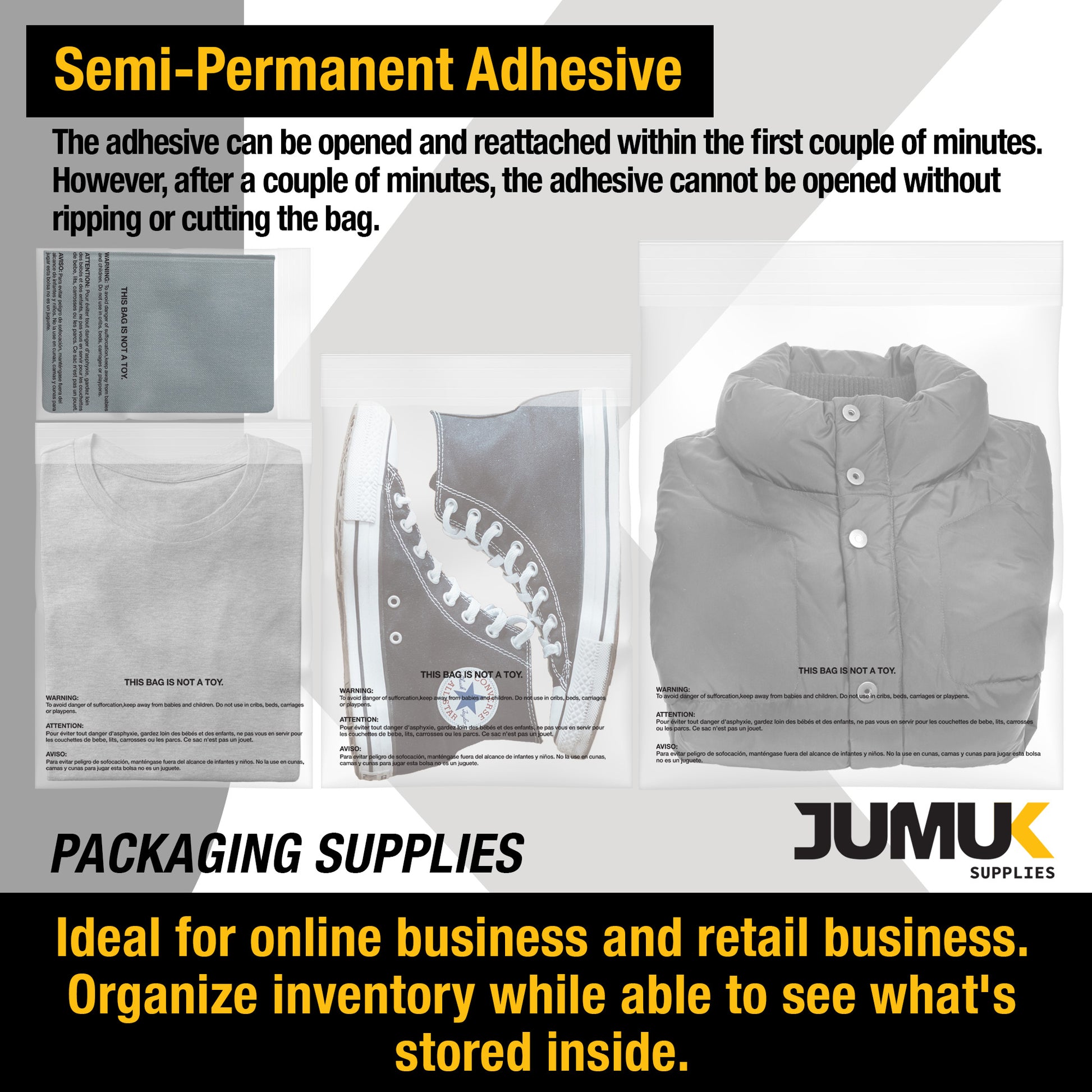 Semi-Permanent Adhesive - The polybag can be opened and reattached within the first couple of minutes. After a couple of minutes, the adhesive cannot be opened without ripping or cutting the bag.
